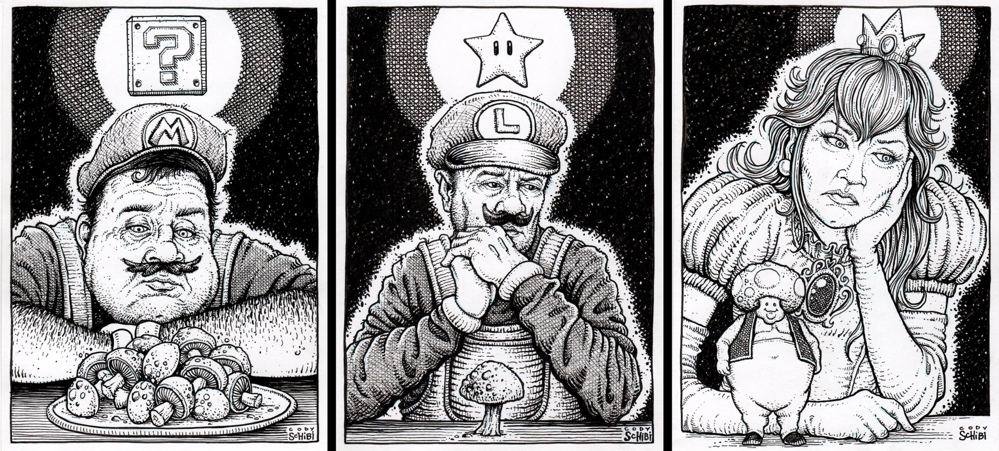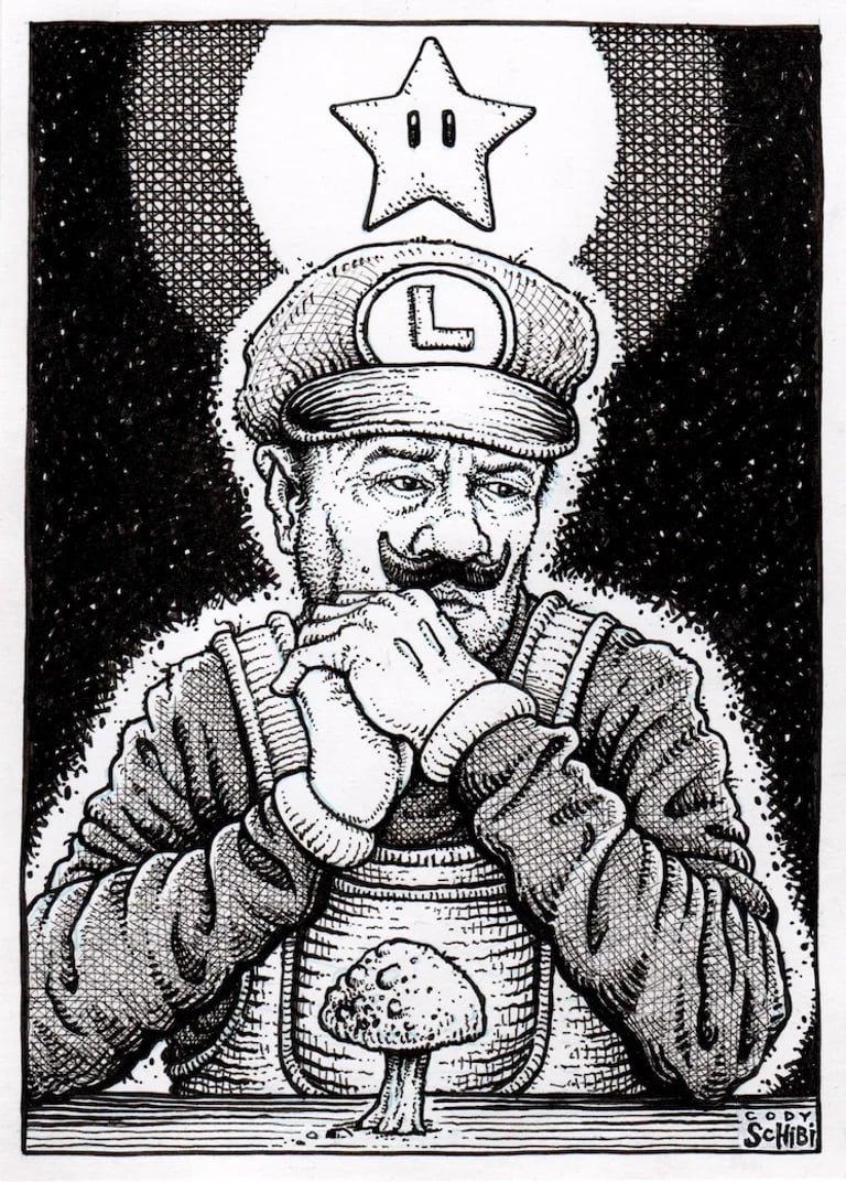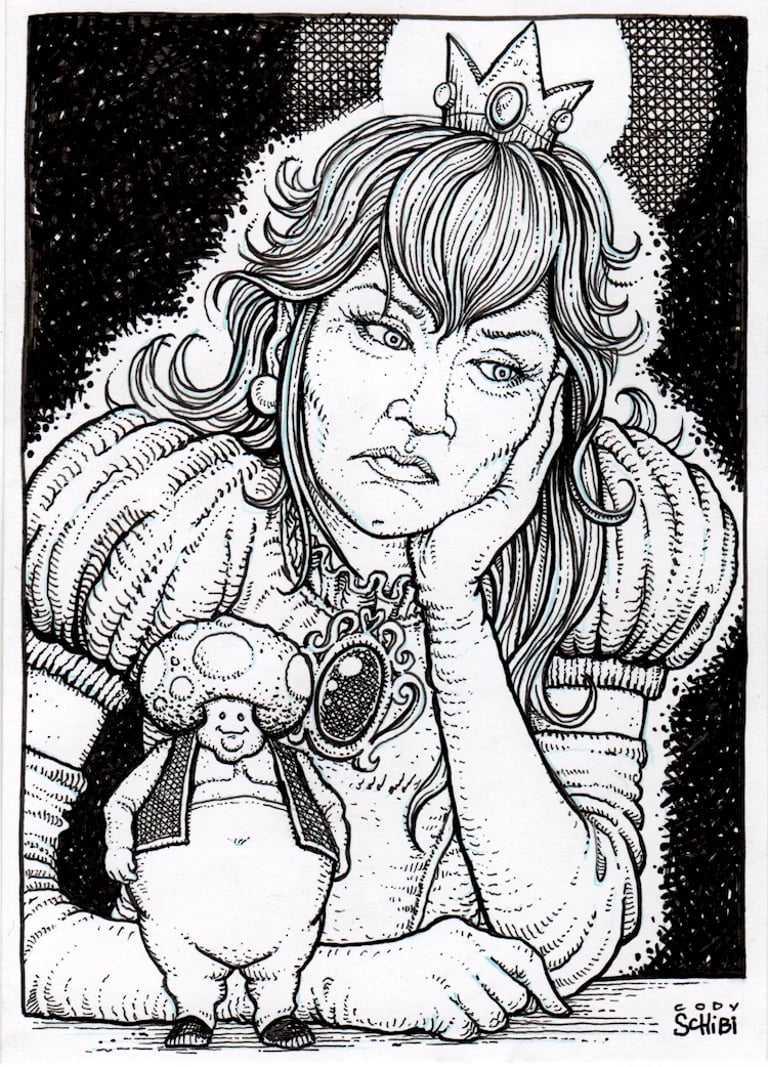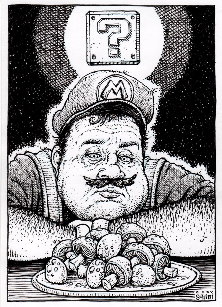 Original ink illustrations of some weird characters from that video game. That's SUPER!